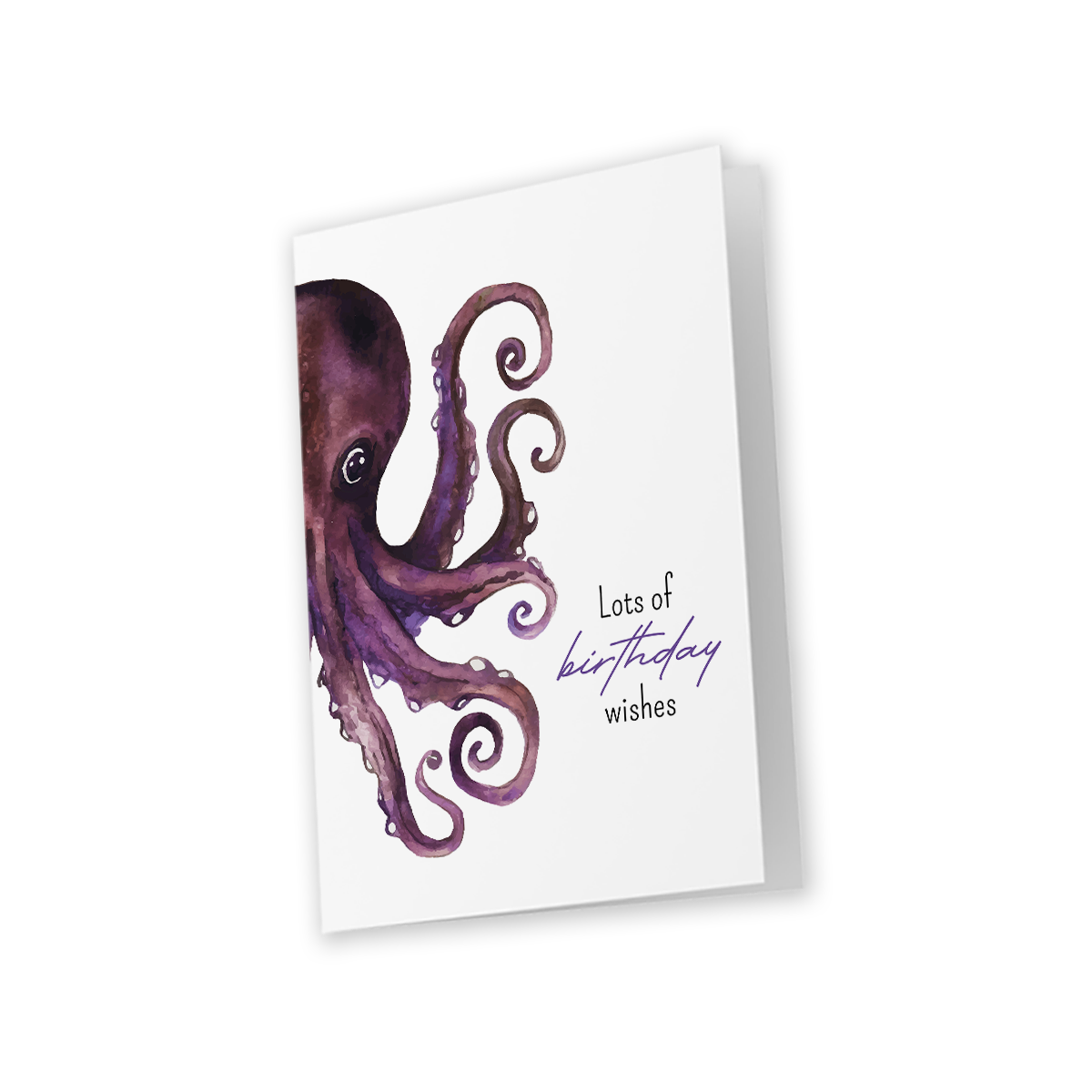 Unsere Geburtstagskarten mit Oktopus-Design sind der perfekte Weg, um ein Lächeln auf das Gesicht Deiner Liebsten zu zaubern! Das Okotpus-Motiv in Aquarelloptik verleiht jedem Gruß eine Extraportion Freude und lässt den Geburtstag zu einem besonderen Ereignis werden.