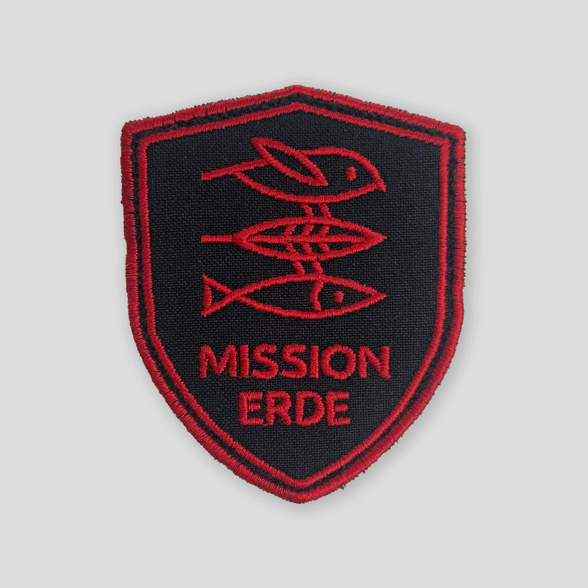 Das Logo „Mission Erde“ wird mit einem Faden aus 100% Tencel TM Lyocell aus nachwachsenden Rohstoffen bestickt.