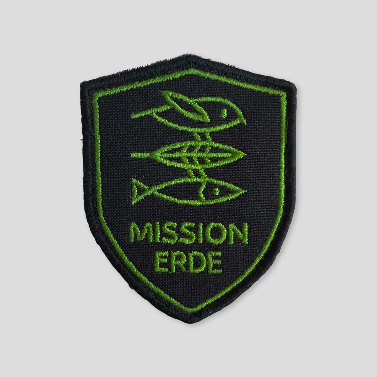 Das Logo „Mission Erde“ wird mit einem Faden aus 100% Tencel TM Lyocell aus nachwachsenden Rohstoffen bestickt.